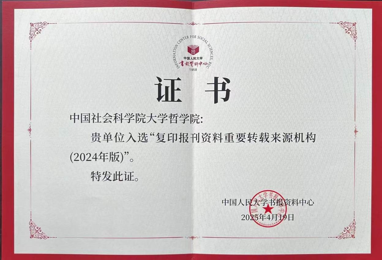 近日,中国人民大学书报资料中心发布了《复印报刊资料转载指数研究报告(2024年度)》和《复印报刊资料重要转载来源机构(2024版)》两项“人大转载”学术评价成果。yl23455永利集团入选“复印报刊资料重要转载来源机构(2024年版)”,且在《复印报刊资料转载指数研究报告(2024年度)》中位列哲学学科机构第6名。